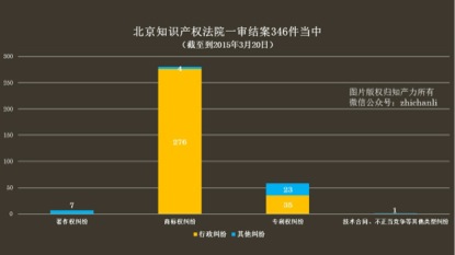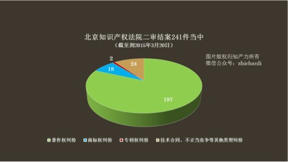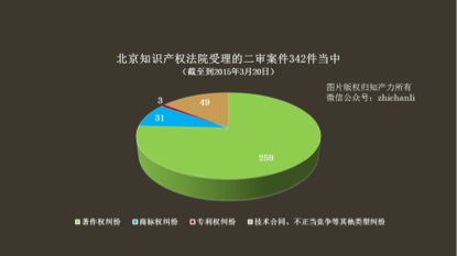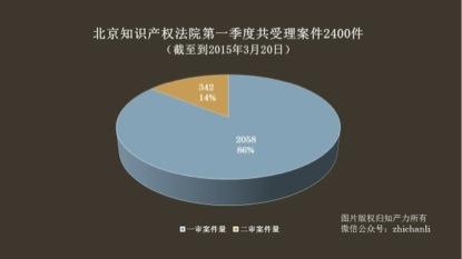 截止2015年3月20日,北京知识产权法院共受理案件2400件,其中一审案件2058件,二审案件342件。