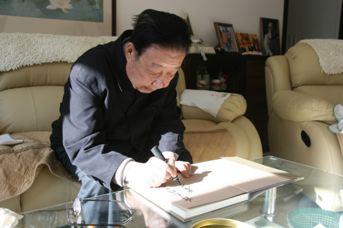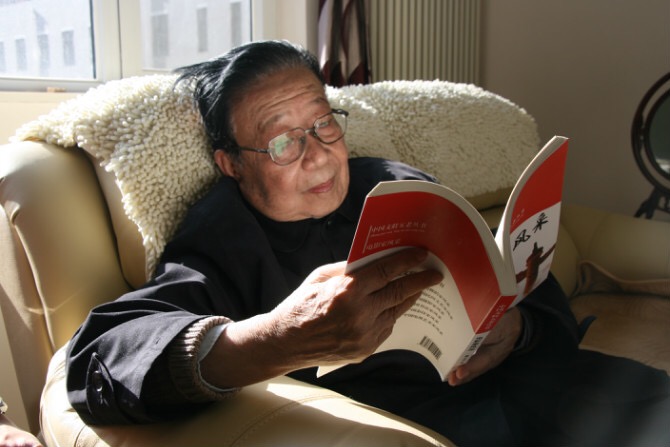 窗外的阳光洒了进来,在86岁高龄的谢铁骊导演身上似铺了一道背光,他翻阅的书籍又似反光板为他宁和的脸庞补亮。我透过照相机的取景框仔细端详,看得出老人的心底不再有结,若是有的话,也结在浓浓的电影情上……