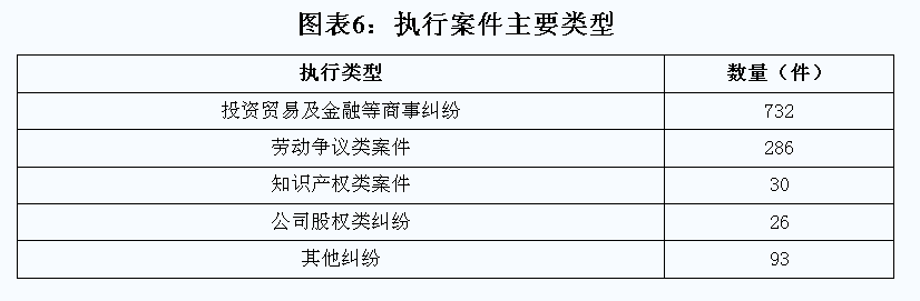 2.基本特点。(1)合同类纠纷所占比重最大。在上海自贸区积极促进投资贸易、商事交易、行业培养等背景下,各类市场主体的市场交易行为更加频繁,由此引发的投资贸易、金融相关的商事合同类纠纷相关执行呈现快速上升的态势。在涉自贸区执行案件中,此类案件多达732件,占比达62.7%。(2)劳动争议类案件上升迅速。自去年以来,受国际和国内经济形势下滑影响,自贸区内部分经营单位的经营形势、财务状况出现问题,降薪、裁员、甚至关门倒闭情况出现上升势头,由此引发的劳动争议类案件数量较上年度有较大幅度增长,总计286件,占比24.5%。(3)执行案件类型更加多元。经过近两年的发展,自贸区社会经济发展更加活跃,涉及的纠纷类型更加多元。从执行情况来看,涉及公司的破产清算、股东确权、股权转让纠纷案件、涉网络侵权案件等新型案件有较快增长,给执行工作带来新的挑战。(4)采取限制高消费和信用惩戒措施效果显著。对被执行人采取限制高消费和予以信用惩戒措施累计967人次,占执行案件总量的82.9%,大部分被执行人在被限制高消费和列入失信名单后能主动联系法院积极履行法律义务,执行效果显著。