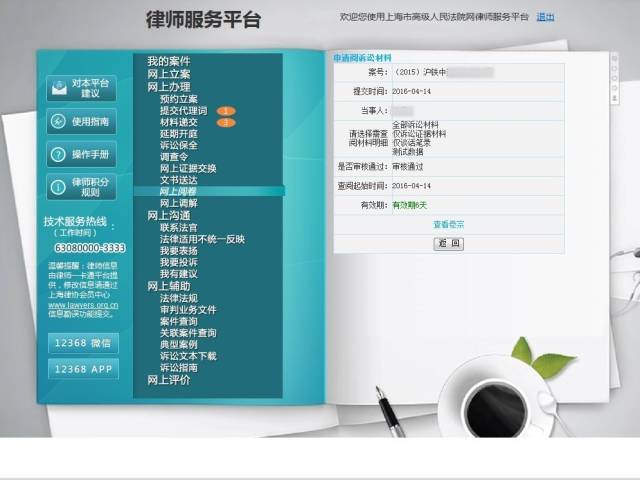 第五条 律师在接到“同意”的回复短信或电话通知后即可登录服务平台,按回复通过的阅卷范围查阅电子诉讼材料,有效期为10天,超过有效期后必须重新办理申请查阅手续。法院若回复“拒绝”的,注明拒绝原因。