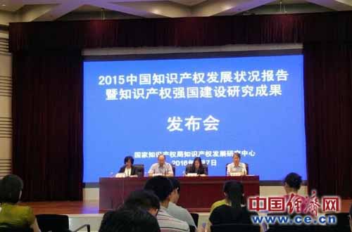 中国经济网北京6月7日讯 (记者苏兰) 7日上午,国家知识产权局知识产权发展研究中心在京举办新闻发布会,发布《2015年中国知识产权发展状况报告》等有关研究成果。