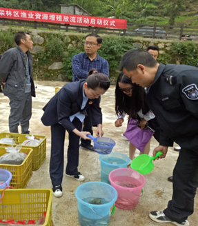 在流放鱼苗前,公证员详细了解项目具体实施方案、阅读苗种供应单位确定书,查阅了鱼苗流放采购协议书和苗种种质检测报告。在鱼苗放流期间,公证员对鱼苗流放地沿渡河流域下谷各流段,放流品种、数量和放流过程进行了全程监督。