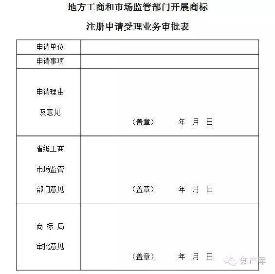 第三条 县级以上(以省会城市、地级市为主)工商、市场监管部门拟开展商标注册申请受理业务的,须填写《地方工商和市场监管部门开展商标注册申请受理业务审批表》(附表),由省(自治区、直辖市)工商、市场监管部门提出意见后报送商标局。按照便利化原则,兼顾区域分布、商标申请量等因素,经审核确有设立必要且具备运行条件的,经商标局批准并公告后开展受理业务。