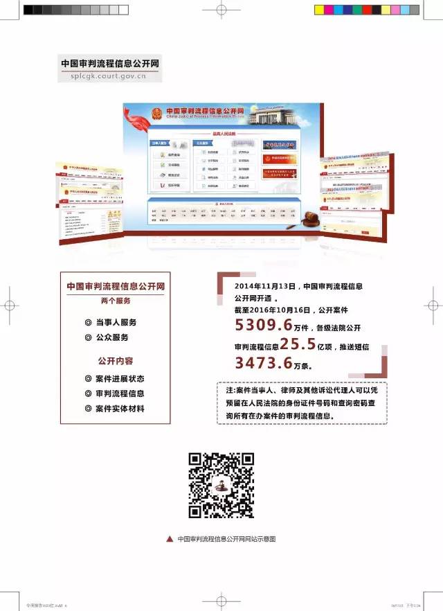 建设审判流程公开平台。开通中国审判流程信息公开网,通过网站、短信、微信等多种渠道推送案件流程信息,变当事人千方百计打听案件进展为法院主动向当事人告知。当事人及其诉讼代理人自案件受理之日起,可以凭有效证件号码,随时登录查询、下载有关案件流程信息,及时了解案件进展。案件的程序性诉讼文书可通过网络进行电子送达。截至今年10月16日,各级法院共公开审判流程信息25.5亿项,推送短信3473.6万条,方便了当事人参与诉讼。