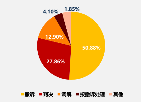 知识产权侵权案件的结案方式以撤诉为主,占比50.88%。