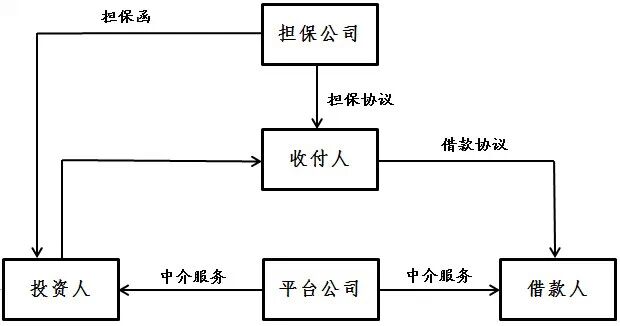 然而,在实际处理互联网金融纠纷的过程中我们却发现,这一态势竟衍生出意想不到的另一方面问题:平台公司为完全定位为平台中介服务机构,在有关协议安排中很少约定其一旦垫资后有权向借款人或担保公司追索;并且平台为避免产生资金池,还会安排第三方作为收付主体实现资金流转(类似交易安排见下图):